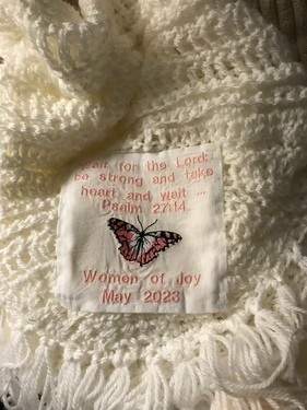 The Prayer Shawl Ministry knits or crochets shawls and lap blankets to comfort people that are going through difficult times and are also used to celebrate special occasions.