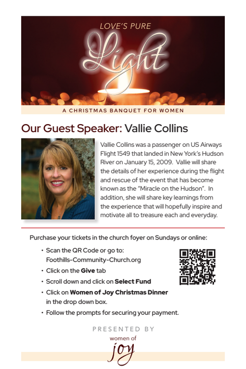 The cost is $15 and the sign up is at the Women of Joy table in the FCC lobby or contact the FCC Office at info@foothills-community-church.org for more information and to sign up.