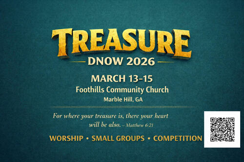 Disciple Now Weekend (March 13–15) is coming to Foothills Community Church, and this year’s theme is “Treasure” from Matthew 6:21: “For where your treasure is, there your heart will be also.” It will be a weekend of worship, small groups, team competitions, and honest conversations about what truly satisfies the heart.